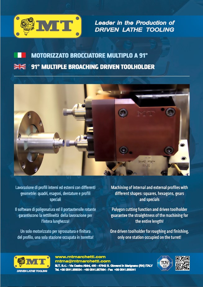 M.T. S.r.l. progetta soluzioni tecniche all’avanguardia, che coniugano precisione ed elevata capacità di taglio, con l’obiettivo di ottimizzare i parametri di lavorazione, ridurre i tempi di allestimento e sfruttare appieno tutte le potenzialità del tornio.